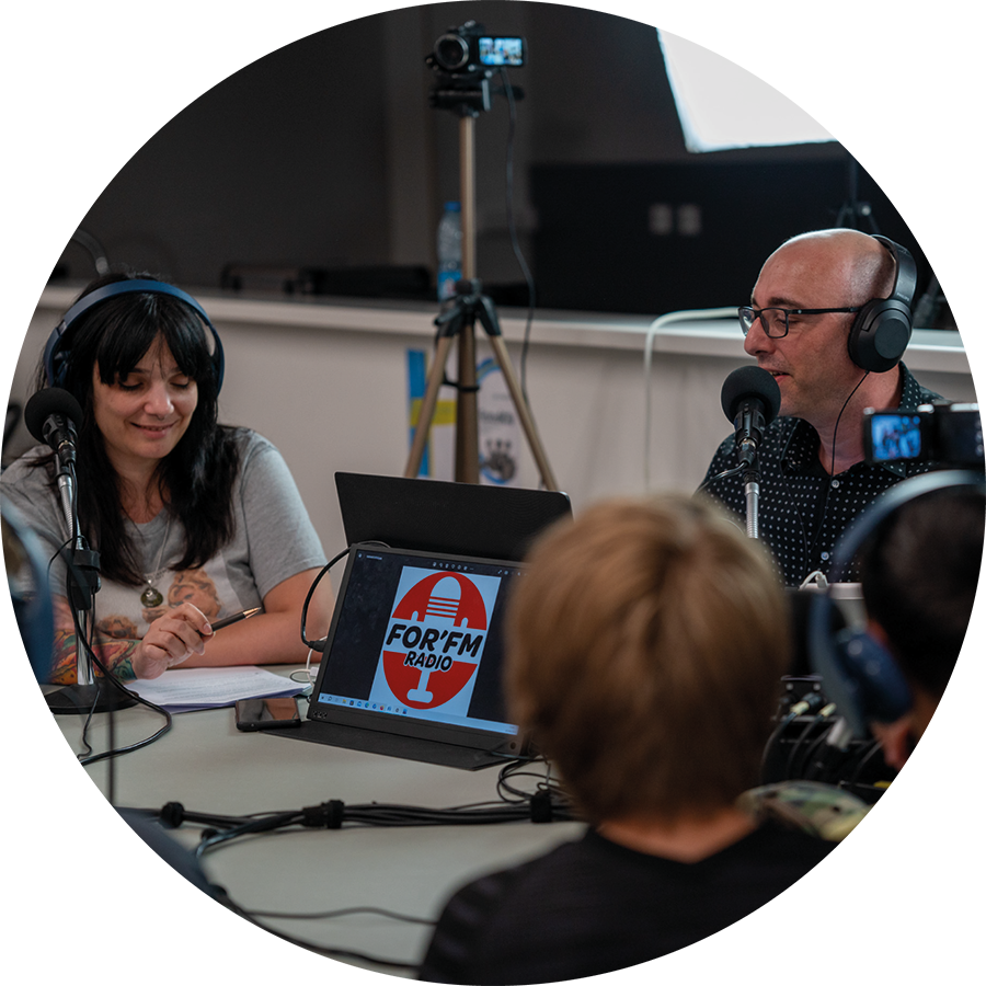 La radio locale de Forbach prend à nouveau ses quartiers au FestivActu, après une première participation en 2023. Autodidacte, David Schmitt fait parler sa passion et souhaite la partager avec le plus grand nombre d’auditeurs. C’est vers les jeunes que For’FM s’adresse avec bienveillance et réflexion autour d’une émission spéciale, retransmise en webradio.